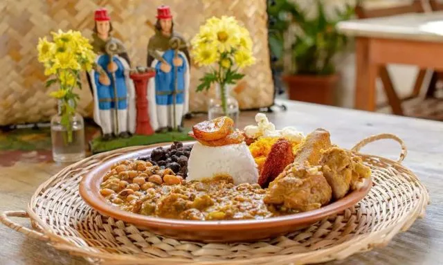 Reconhecido como patrimônio imaterial da Bahia, o Caruru de São Cosme e São Damião leva diversos produtos conhecidos da culinária baiana, entre eles o quiabo, dendê e camarão.