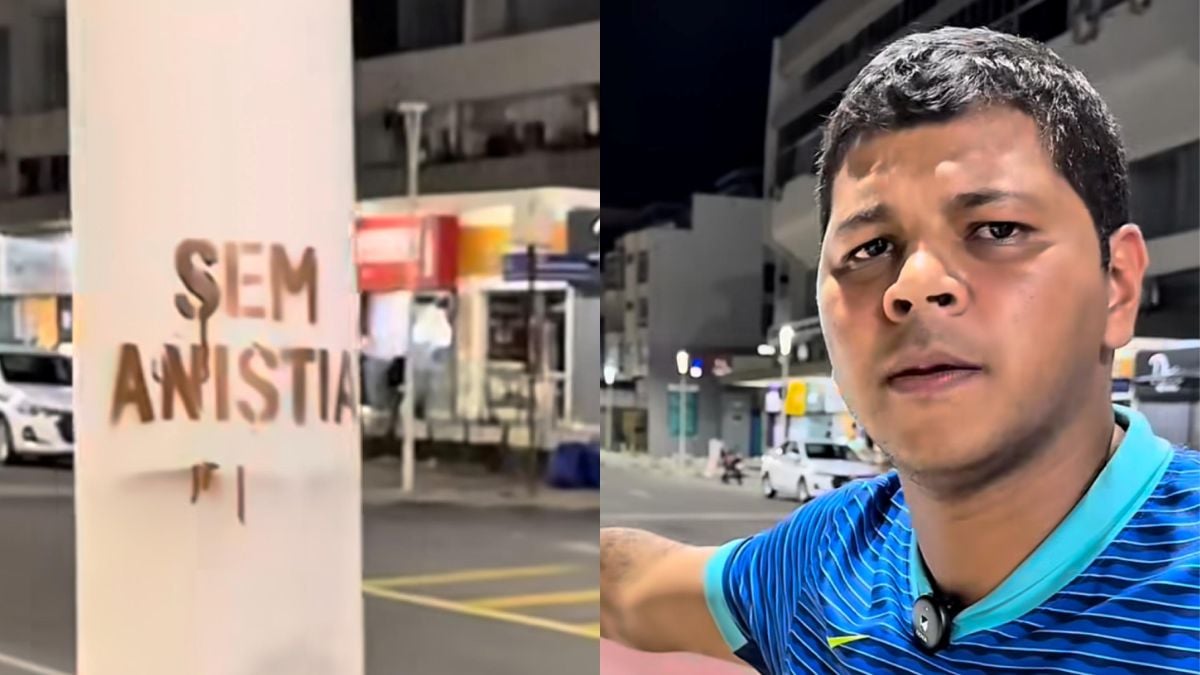 Em um vídeo publicado nas redes, Diego Castro mostrou postes pichados por manifestantes e afirmou que irá solicitar as imagens do circuito de monitoramento da região para identificar os responsáveis. Ele cobrou que os atos recebam a mesma punição aplicada pelo Supremo Tribunal Federal (STF) aos manifestantes de 8 de janeiro, citando o caso da cabeleireira Débora, condenada a 14 anos de prisão por riscar com batom a estátua da Suprema Corte, em Brasília.