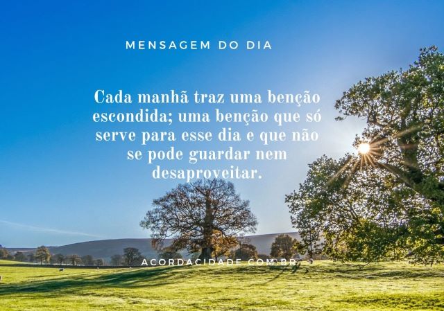 Cada manhã traz uma benção escondida; uma benção que só serve para esse dia e que não se pode guardar nem desaproveitar.