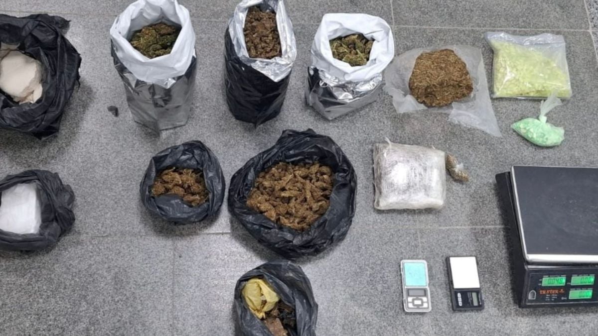 No local, foi constatada a procedência da denúncia, sendo identificado forte odor característico de substância ilícita, além de significativa quantidade de material entorpecente, a saber: comprimidos de substância análoga à êxtase; diversas porções e sacos de substâncias análogas à maconha; porções de substância análoga à cocaína; balanças de precisão de tamanhos variados, além de instrumentos utilizados para fracionamento e pesagem da droga.