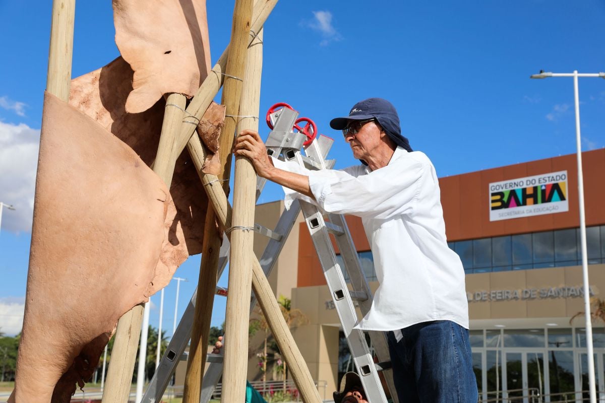 A peça é uma das unidades do Projeto Terra, que visa à criação de grandes esculturas de couro e madeira, de murais e de quadros da série Histórias do Sertão inspirados na iconografia do cordel, empregando material do próprio local. A escultura anterior foi instalada no campus da Uefs em 2013.