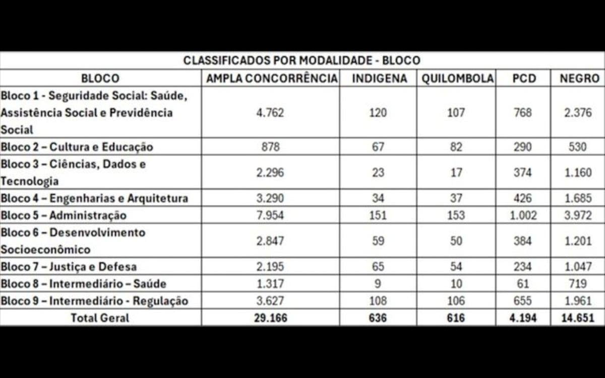O concurso público recebeu 252.596 inscrições homologadas para as vagas com cotas destinadas a pessoas negras, indígenas, quilombolas e com deficiência (PCD).