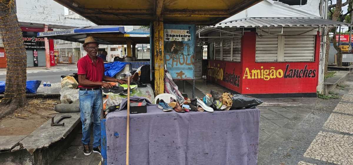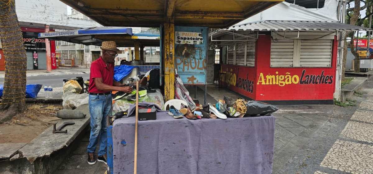 Paulo é o sapateiro mais antigo da praça, e completa 45 anos de sapateiro em 2026. Ao Acorda Cidade, o profissional falou sobre o movimento em 2025.