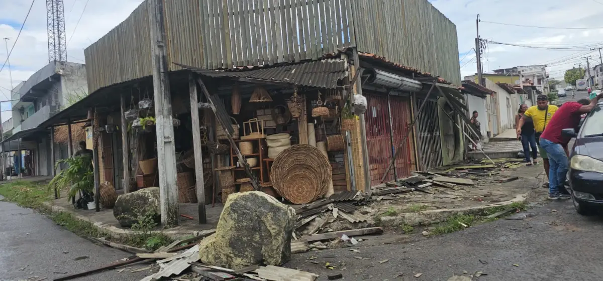 “Eu estava no interior da loja, estava fazendo uma limpeza no fundo e aí eu só vi a bagaceira, zoada. Quando eu chego, está a menina que trabalha aqui na loja, se acabando de chorar. E aí eu acalmei ela e tal. E aí, vim aqui, olhar a bagaceira.”