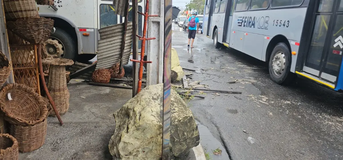 Um ônibus desgovernado que faz a linha da zona rural para o centro de abastecimento de Feira de Santana colidiu com uma pedra na manhã desta quarta-feira (28). O acidente aconteceu na Rua Manoel da Costa Ferreira, na Barroquinha, no cruzamento com a Avenida de Canal.