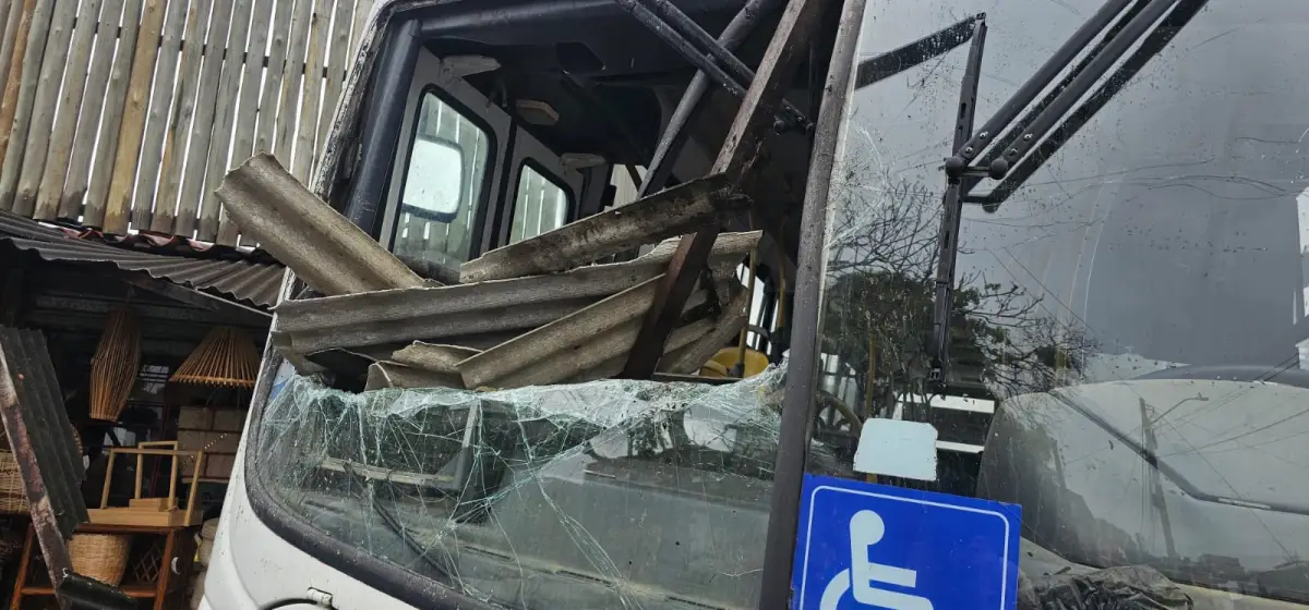 Segundo Alexandrino, o ônibus desceu desgovernado e só parou por conta de uma pedra que ele colocou no lugar há uns 40 anos. Parte da frente da loja de artesanato foi atingida, mas ainda não foi possível calcular o valor dos estragos. Parte do telhado da frente foi destruído. Por sorte, ninguém ficou ferido.
