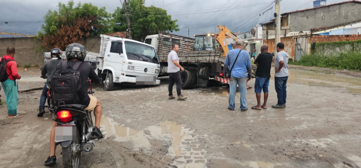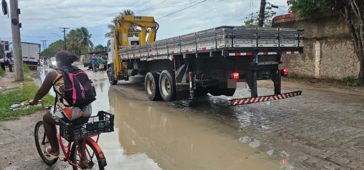 “Essa era a melhor rua do bairro e agora ficou horrível. Esse piso já cedeu umas três vezes. Está causando muitos transtornos. Os dois caminhões estavam passando e o piso cedeu. Aqui não aguenta chuva, não. Os dois caminhões ficaram no buraco”, disse Gilton.