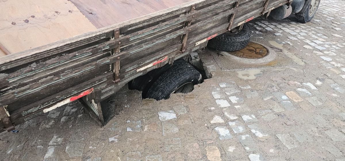 O calçamento de uma rua no Centro Industrial Subaé (CIS), em Feira de Santana, cedeu com o peso de dois caminhões. O incidente ocorreu no fim da tarde desta quinta-feira (26).