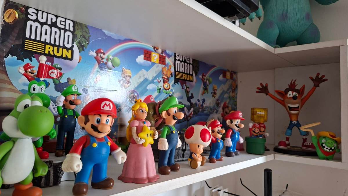 Ele detalhou que o apreço pelo Mario surgiu quando tinha 8 anos e visitava a locadora dos primos. “De lá pra cá nunca mais deixei de jogar. Eu até alugava, pegava emprestado o game pra ficar em casa jogando. Às vezes jogava até tarde da noite”.