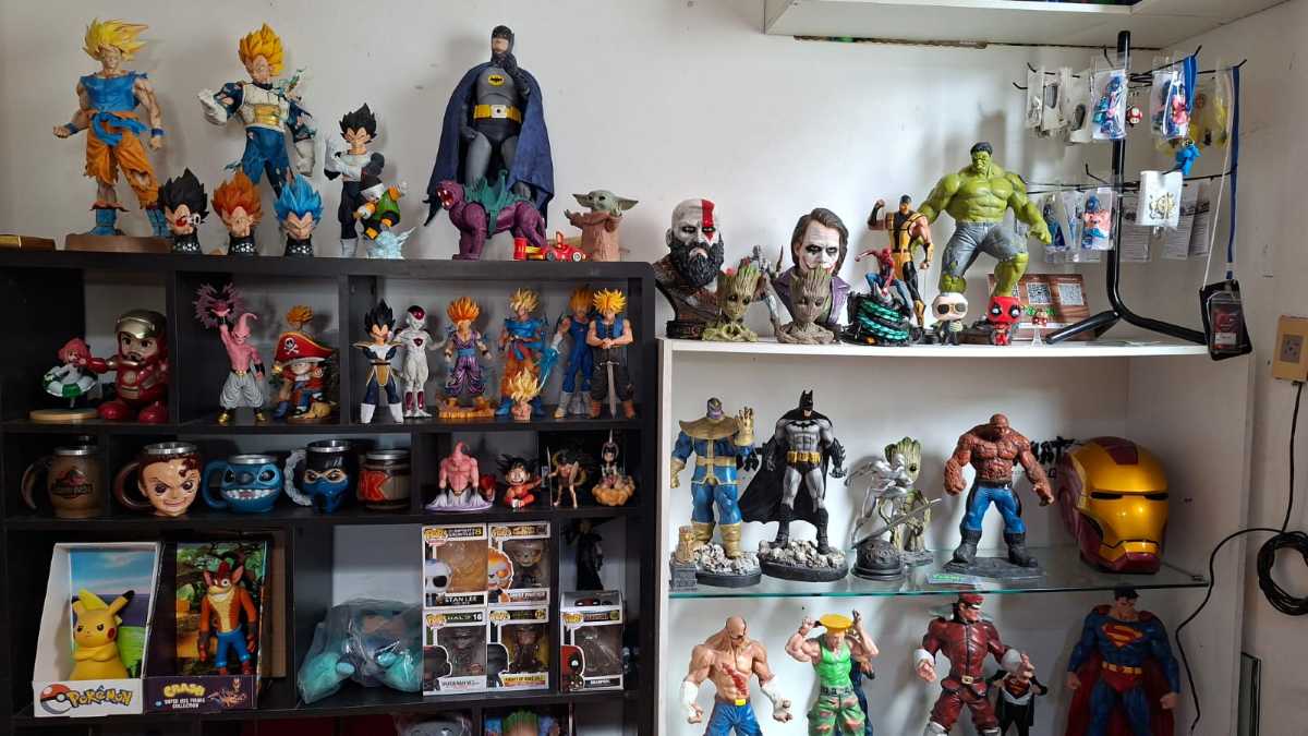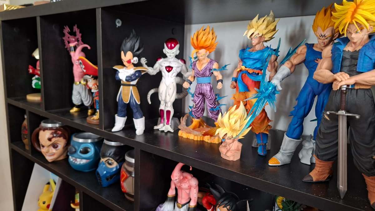 “Aqui é onde eu me encontro, um dos pontos que eu mais gosto de estar, junto aos meus consoles, esculturas colecionáveis. Eu paro aqui e relembro tempo de infância. Tem uns sete anos já que eu criei esse espaço”, contou Fábio em entrevista ao portal Acorda Cidade.