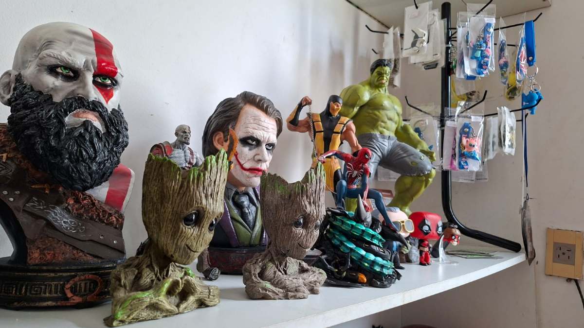 “Hoje eu trabalho com escultura em fibra de vidro, em resina e impressão 3D. Trabalho com colecionáveis também e o meu hobby são os videogames”.