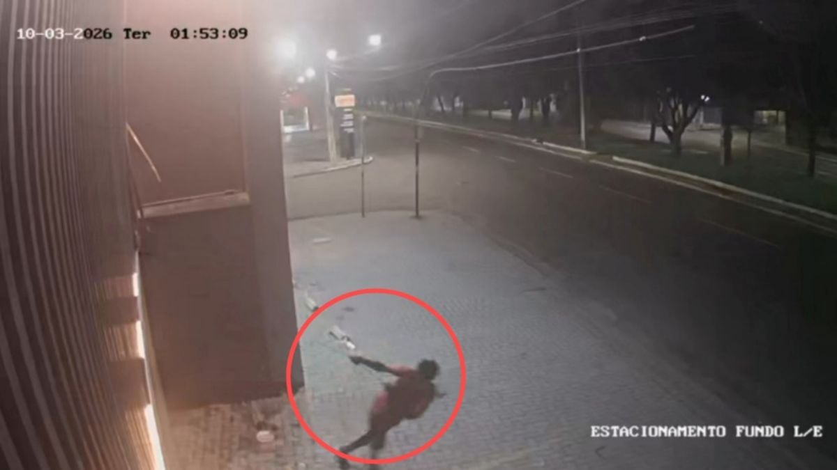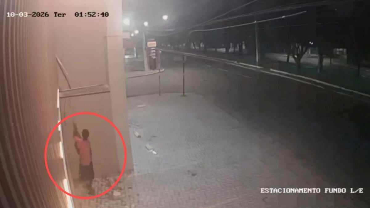 O proprietário de uma clínica, que preferiu não ser identificado, contou que o estabelecimento foi vítima da ação criminosa na madrugada desta terça-feira (10). Em um vídeo registrado por uma câmera de segurança, é possível ver o momento em que o homem escala o muro e arranca parte da fiação elétrica da clínica.
