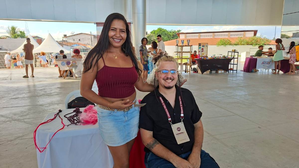 Estandes de tranças também marcaram presença no samba. Em entrevista ao Acorda Cidade, Sol explicou que as mulheres têm pedido, principalmente, tranças centralizadas, coroinhas no topo ou nas laterais, enquanto os homens preferem tranças embutidas ou mais soltas.