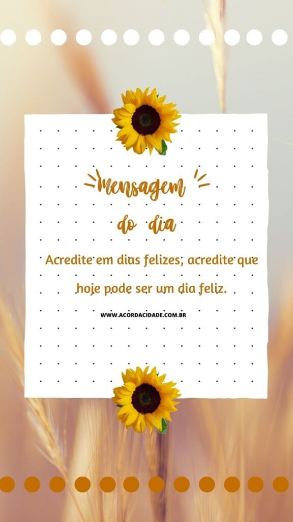 Acredite em dias felizes, acredite que hoje pode ser um dia feliz.