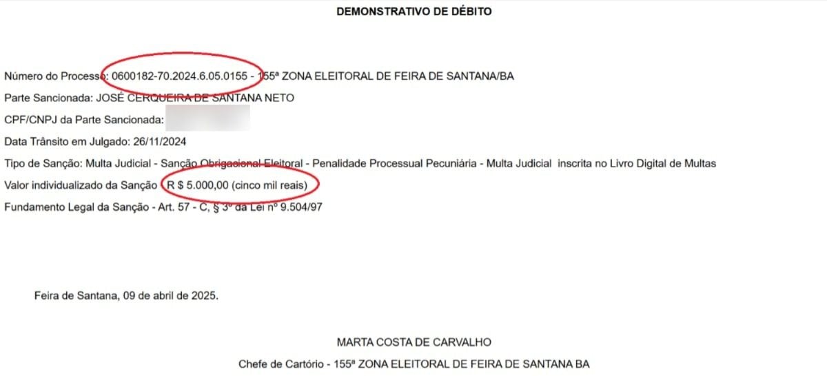 Ao todo, Zé Neto foi condenado em 11 processos, sendo multado em R$ 5 mil em cada um deles. Foi justamente pelo não pagamento de uma dessas multas que a juíza Lisiane Sousa Alves determinou a inclusão do parlamentar no SerasaJud, plataforma que o Poder Judiciário utiliza para comunicar a inadimplência de cidadãos ao Serasa.