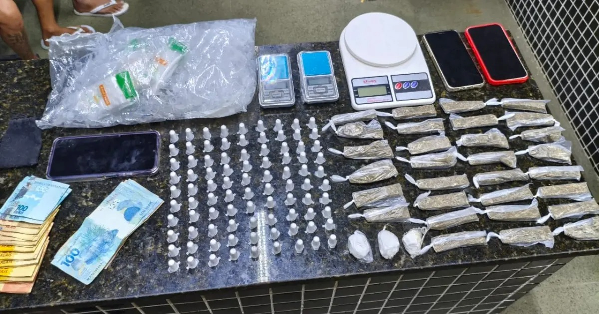 Com eles foram encontrados 90 pinos de cocaína, três porções da mesma substância, 30 buchas de maconha, três balanças de precisão, um pacote de enpendorff e dinheiro. Todo material apreendido e os suspeitos foram encaminhados à delegacia de Itamaraju para tomada das medidas pertinentes.